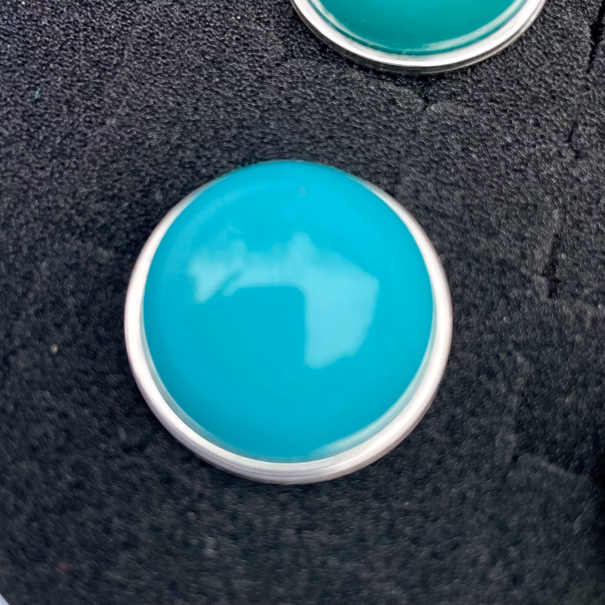 Själva halvklotet är handgjutet i plast och infärgat av mig, och storleken är 25 mm (i diameter). Stommen är i rostfritt stål och är justerbar så den passar till olika storlekar på fingrarna.