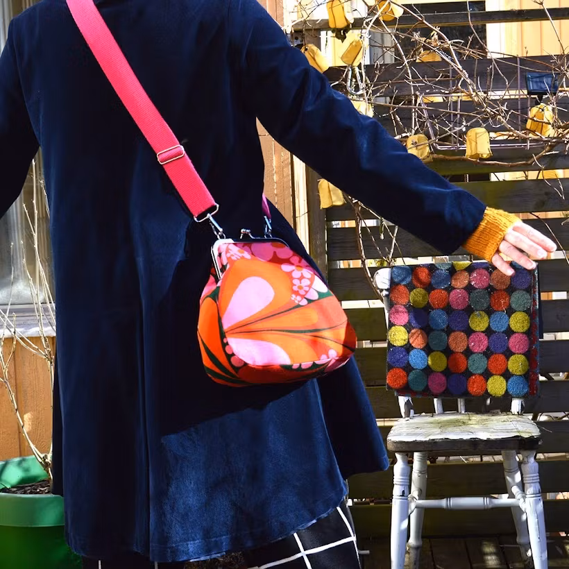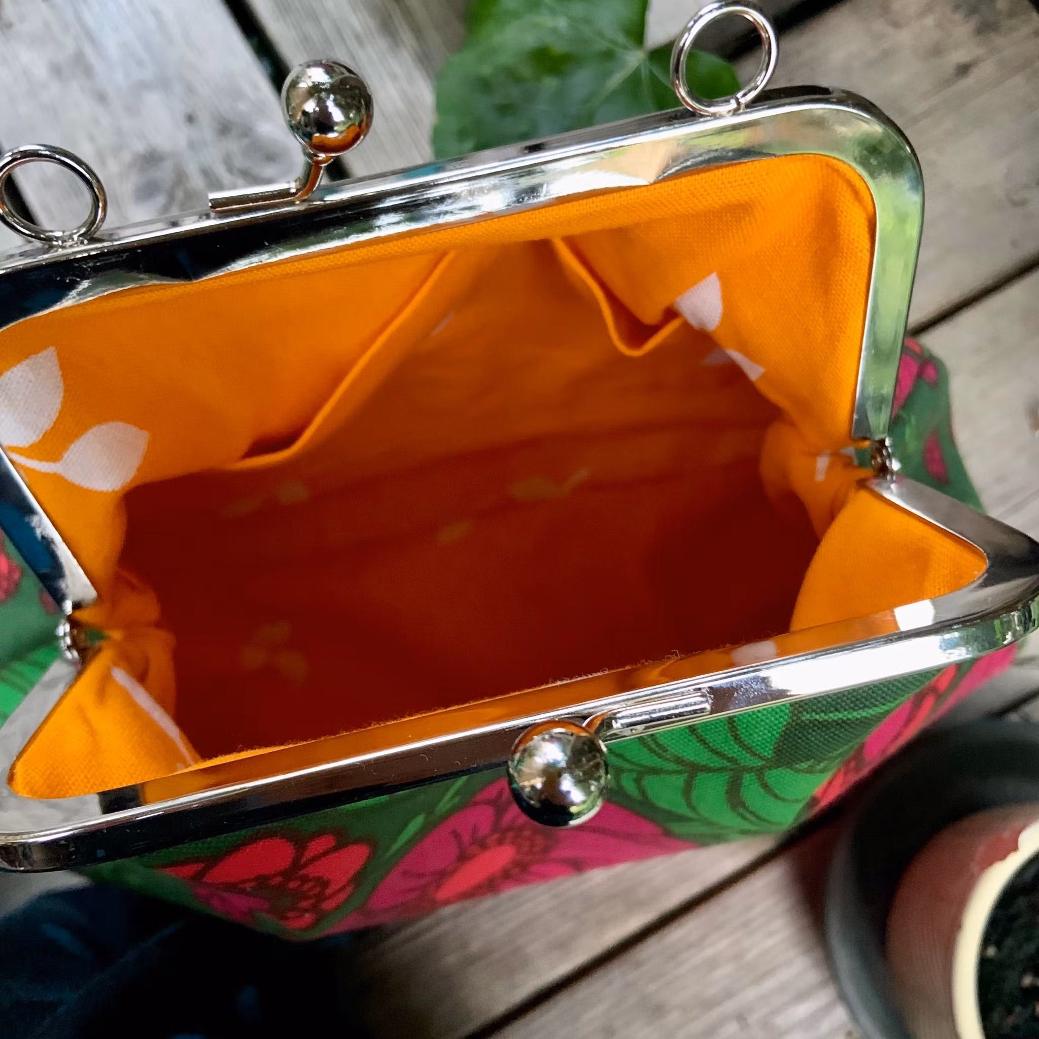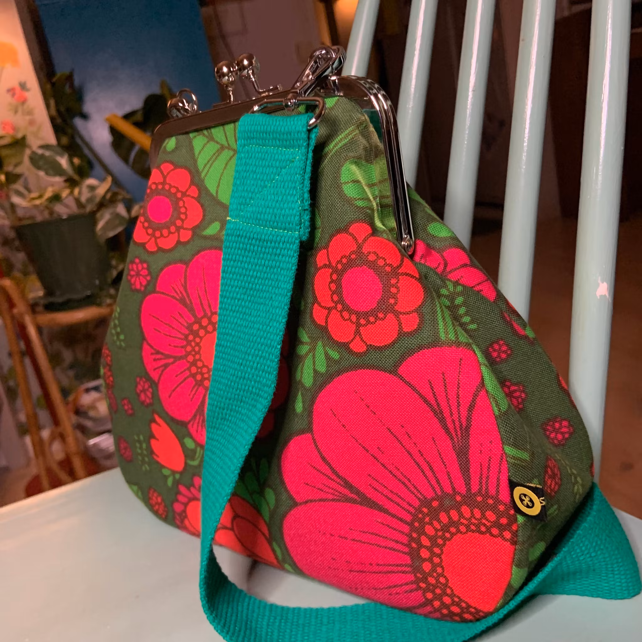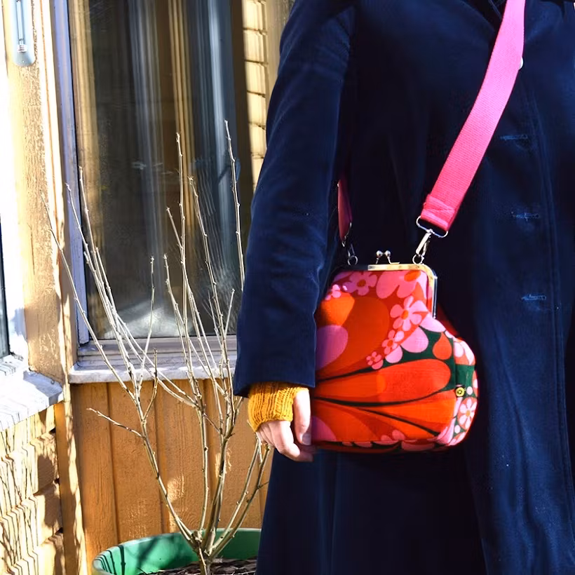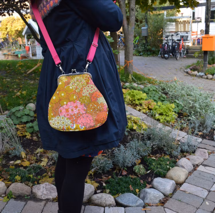 Väska i börsmodell i lite bulligare form vilket ger en rymligare väska med gott om plats. Detta är en lillasyster till ”Ranunkel” som är större men i samma form.