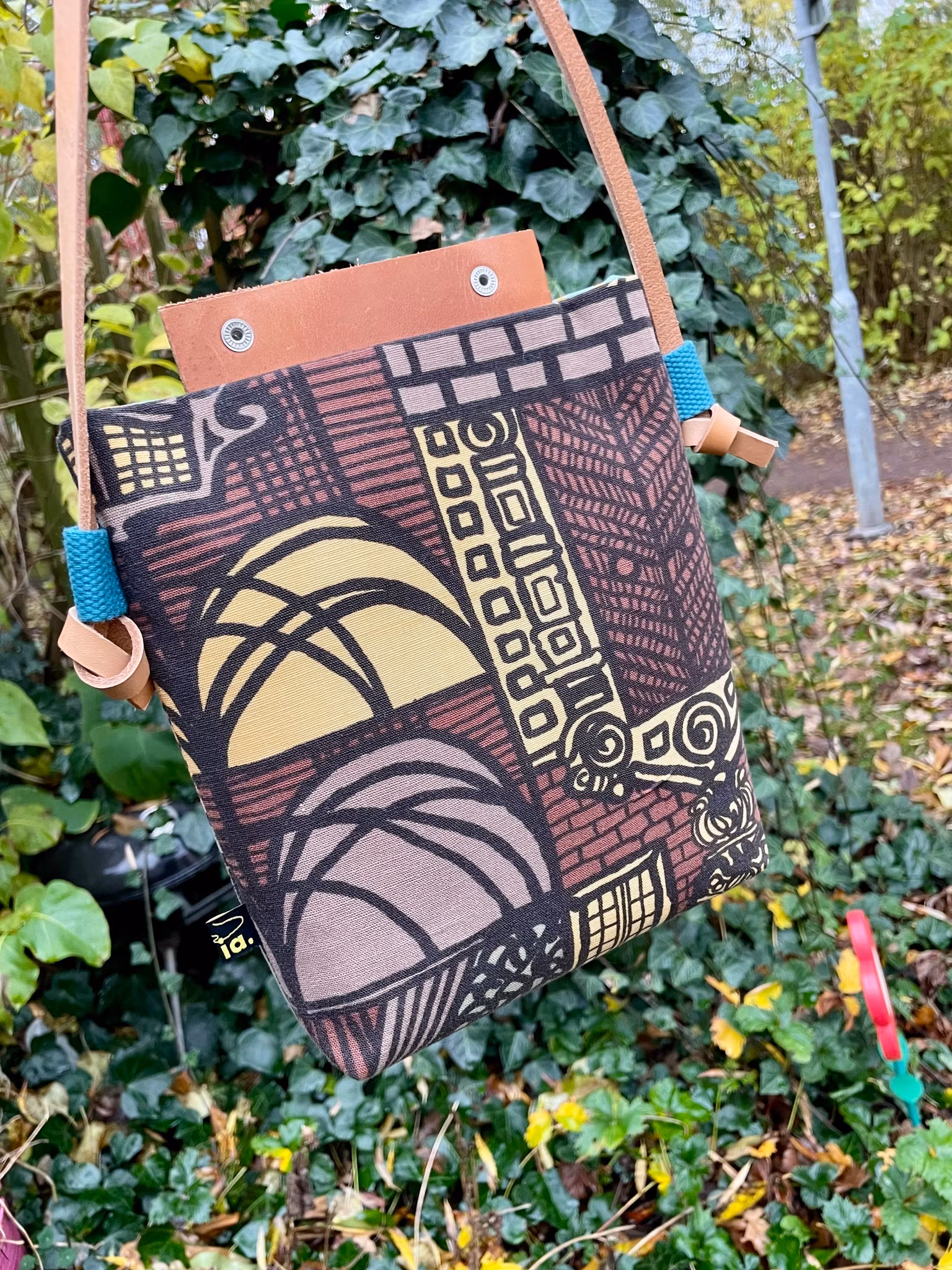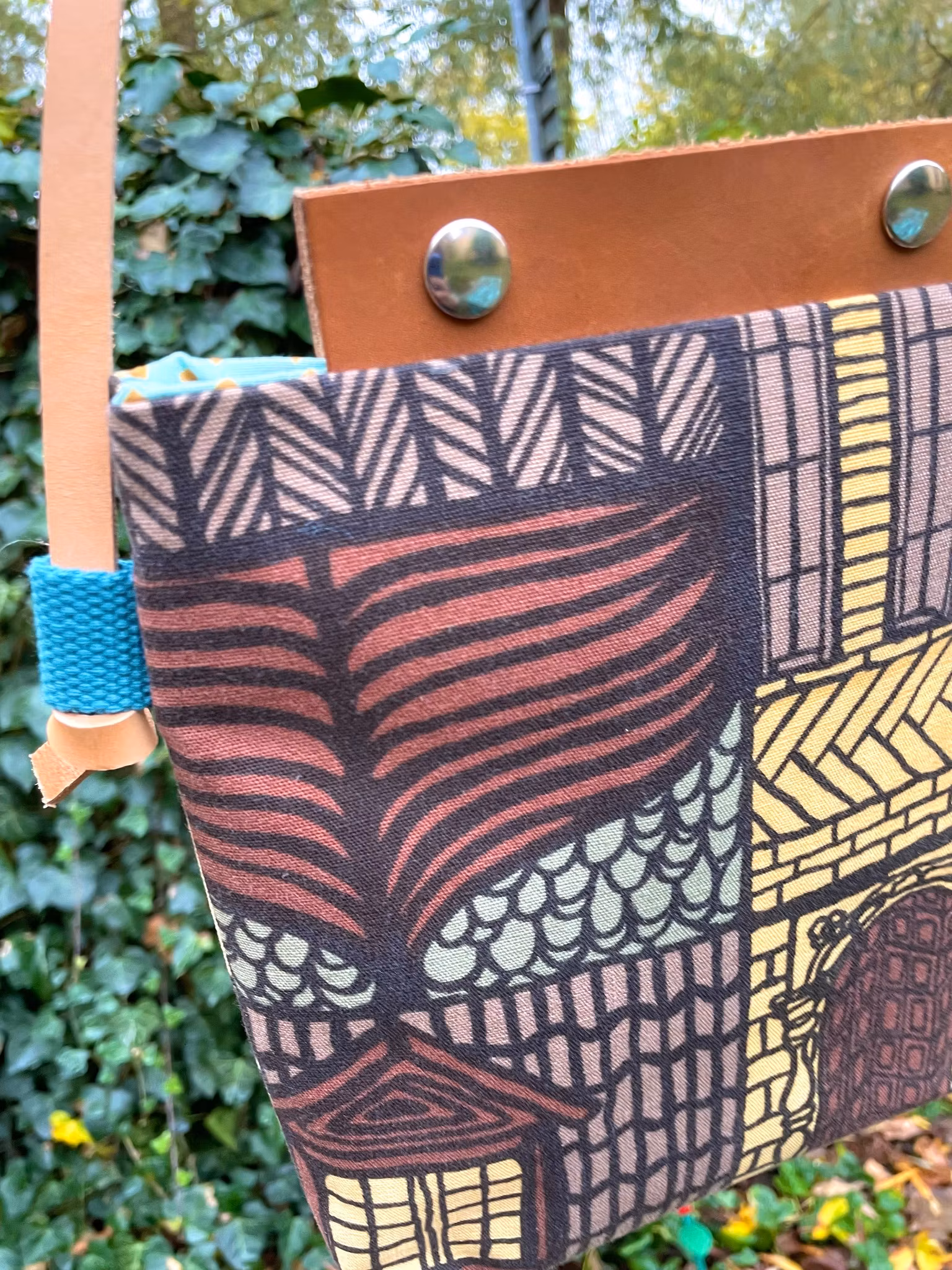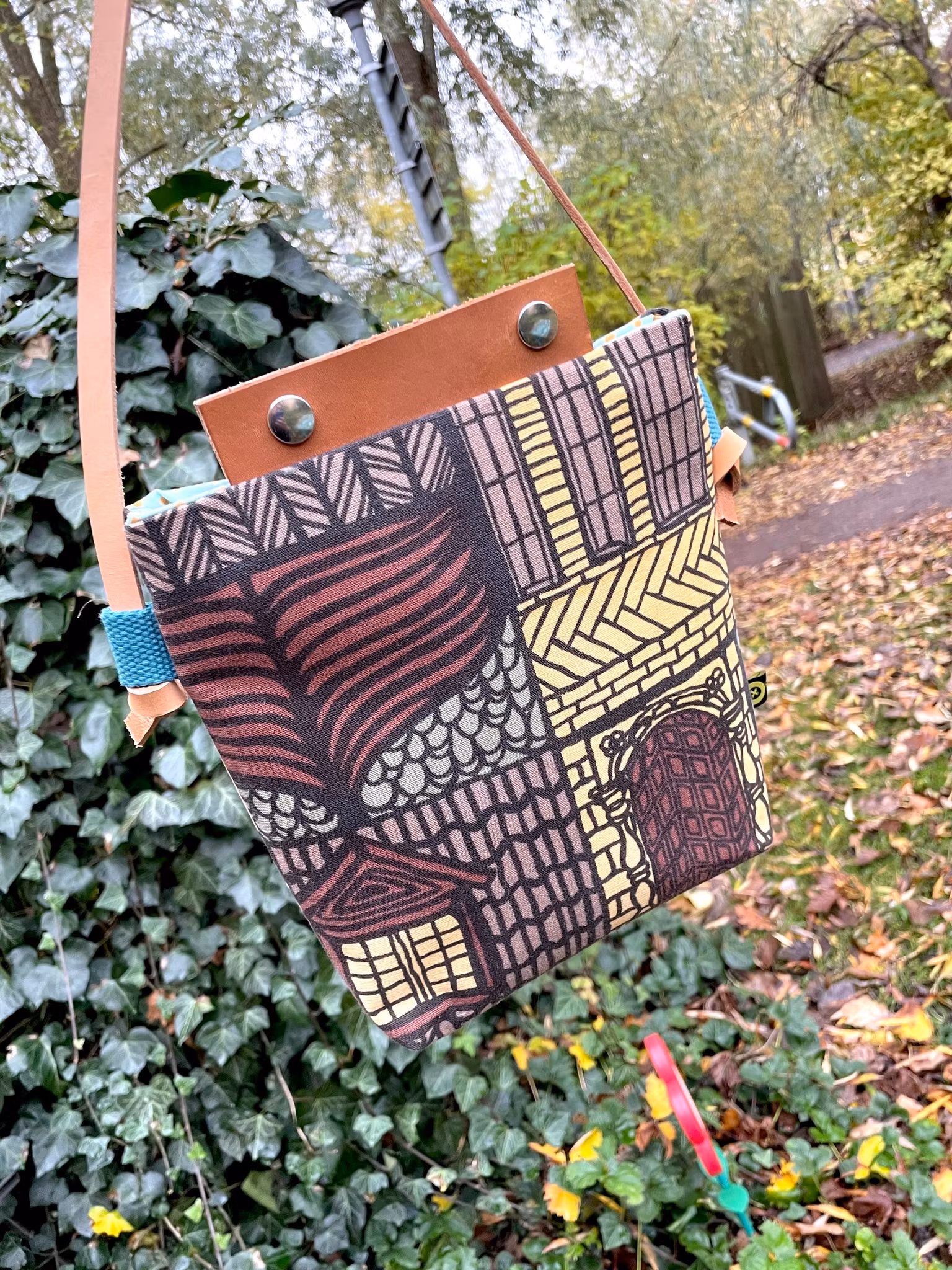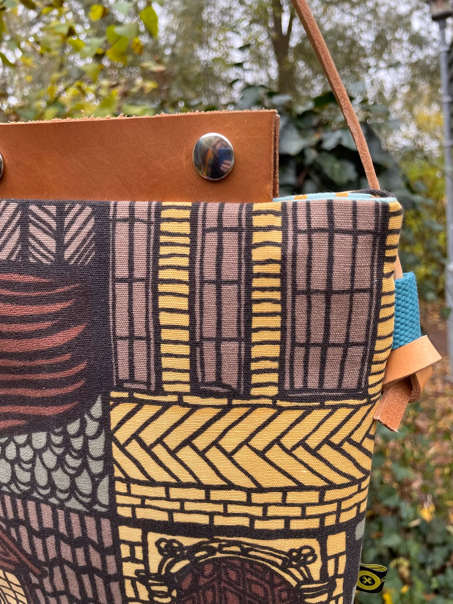 Denna väska är sydd i Al Eklundhs tyg ”Stockholmia”.