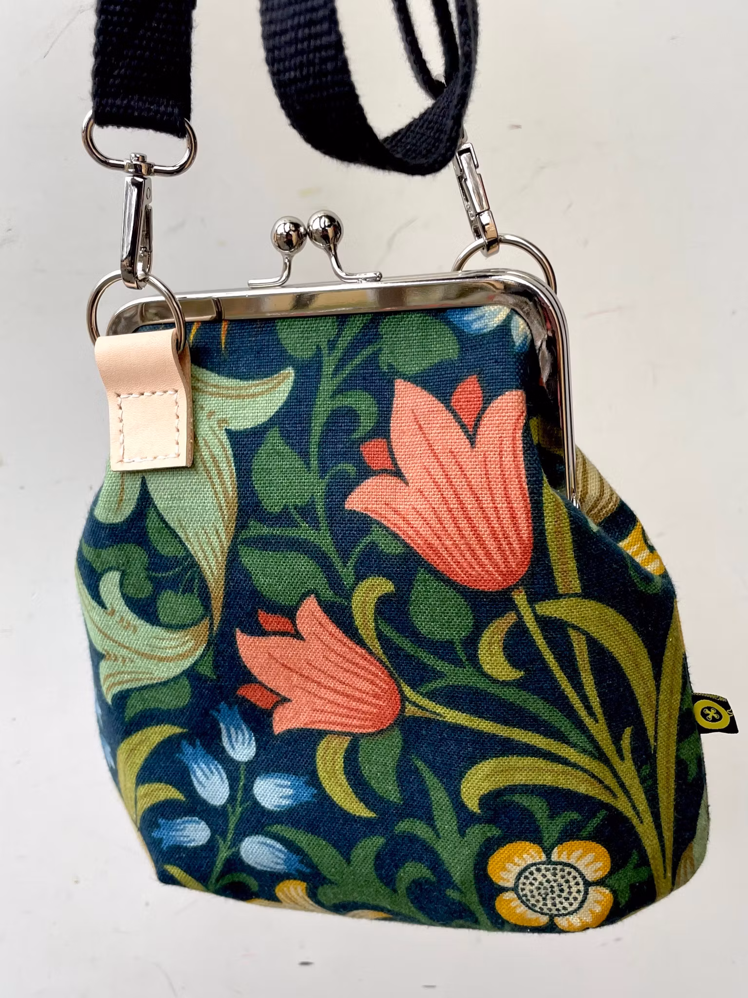 Väska sydd i ett nytt tyg ”Golden Lily” av William Morris i linne.